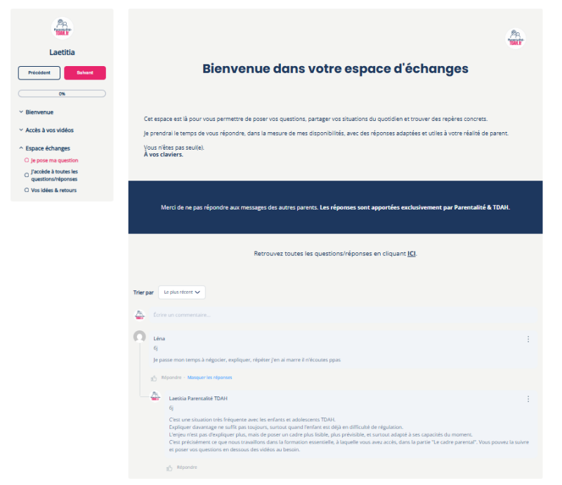 Les visuels ci-dessous sont des extraits réels de l'Espace Parents TDAH.